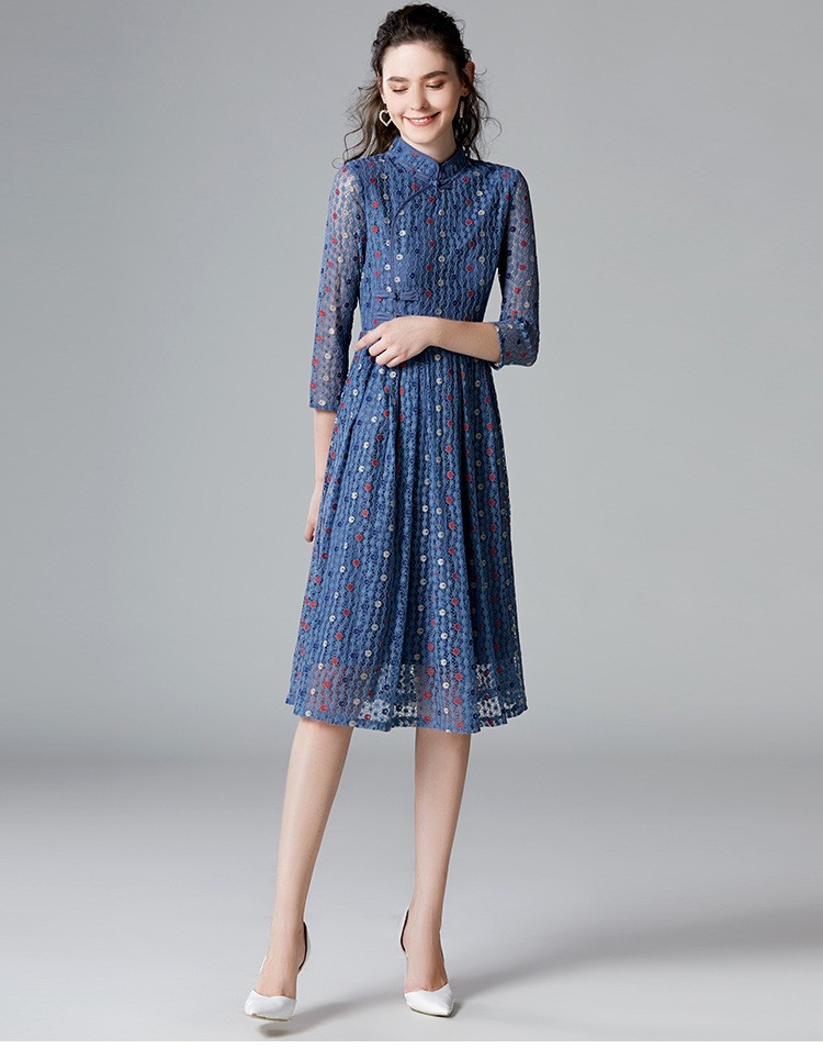 楽天市場 ミディアム丈 ミモレ丈 パーティードレス ワンピース 結婚式 安い チャイナドレス チュールワンピース レディース 民族風 ナチュラルエスニック 復古 スタンドカラー 写真撮影 パーティー 花柄 少女感満々 花柄 Tokiwa33